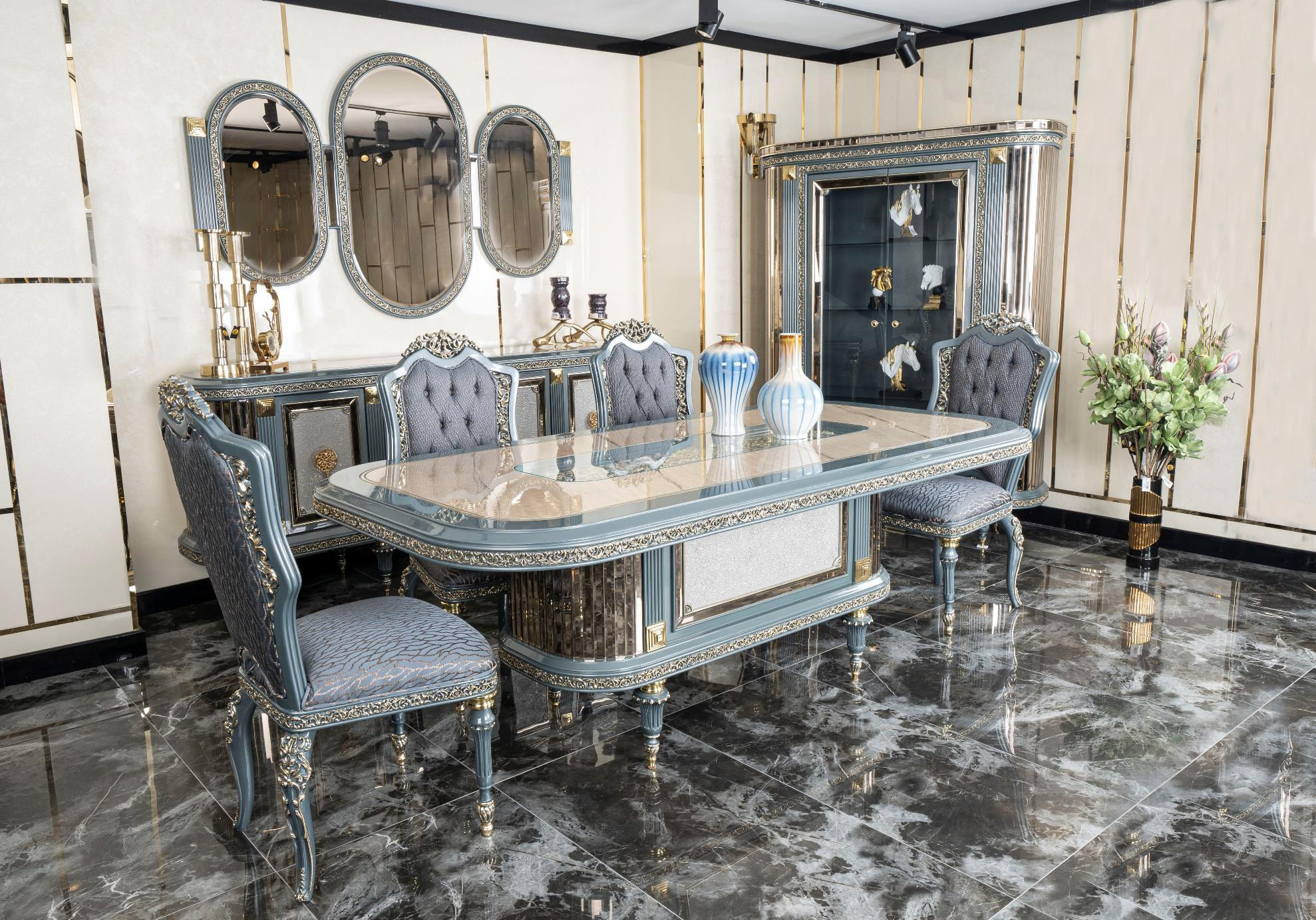 (SHOWCASE+CONSOLE+TABLE+6 CHAIRS) $7,778
